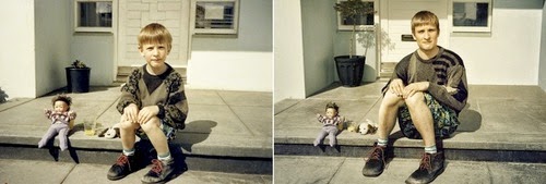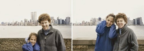 The photographs above, recreated from the past are emotionally moving and unusual at the same time. If you look at the way they pose with their bodies recapturing it all in almost perfect accuracy. The last picture of the Twin Towers missing is powerful and it makes you realize how monumental events reshape the landscape and the times. The sad thing about recreating all photos is that the people we have lost over the years would not appear in the later pictures, so there would be this large empty space that would make their missing presence in our lives hurt all the more.